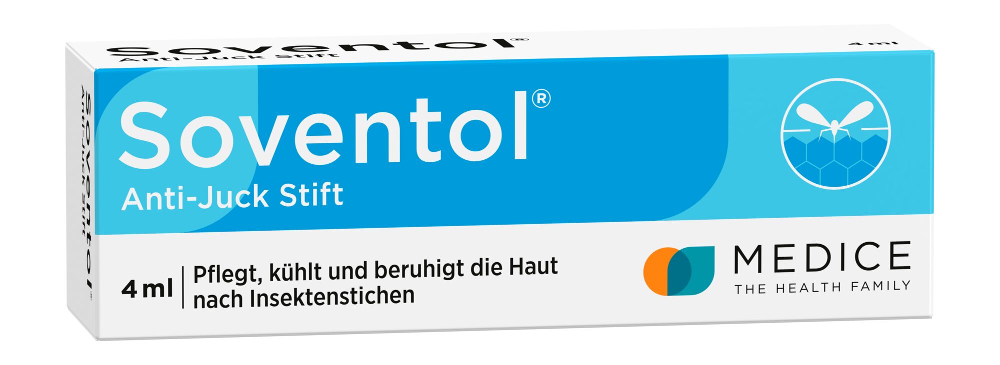 Bei Mückenstichen hat sich der Soventol® Anti-Juck Stift hervorragend bewährt: Er kühlt wunderbar und pflegt sanft.