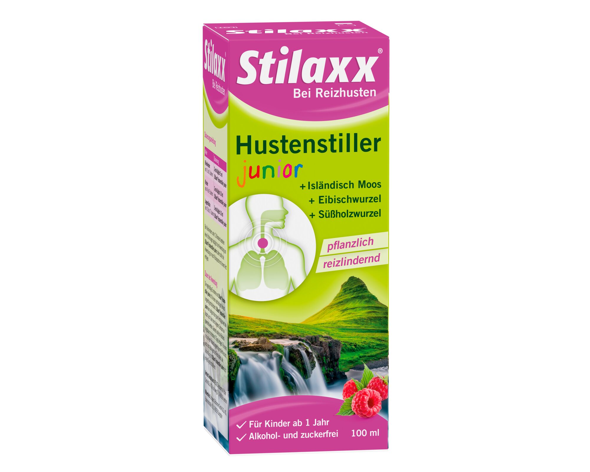 Der Stilaxx® Hustenstiller junior lindert den trockenen Reizhusten. Seine reizlindernde Wirkung erhält der Stilaxx® Hustenstiller junior aus den natürlichen Pflanzenextrakten von Isländisch Moos, Eibischwurzel und Süßholzwurzel – dem 3-fach Komplex der Stilaxx Formel. Für Kinder und Kleinkinder ab 1 Jahr.