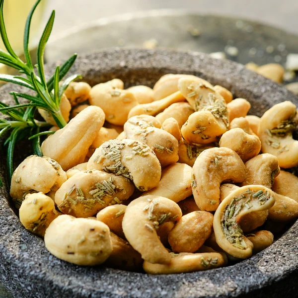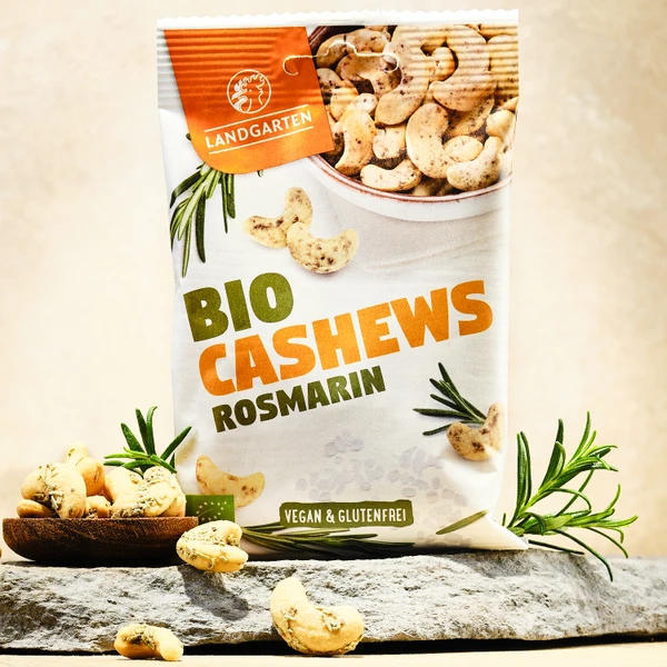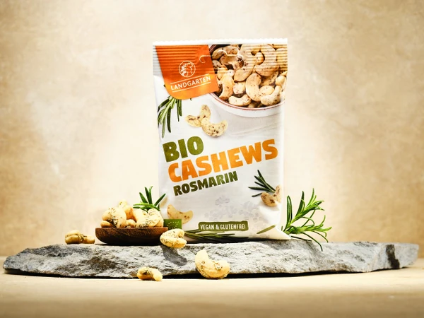 Die Landgarten Bio Cashews Rosmarin verbinden hochwertige Cashewkerne mit aromatischem Rosmarin und einer Prise Meersalz zu einem besonders intensiven Geschmackserlebnis. Mit 92 % Bio-Cashewkernen bildet eine sorgfältig ausgewählte Zutat die Grundlage dieser Snackmischung. Schonend geröstet entfalten die Nüsse ihr natürliches Aroma und sorgen für einen knusprigen Biss mit mediterraner Kräuternote.