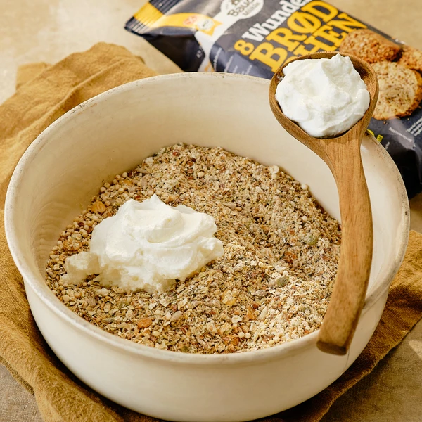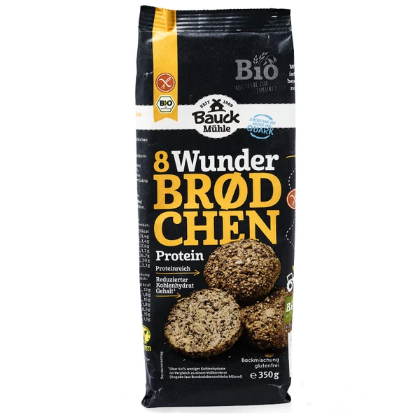 Die Wunderbrødchen Protein vereinen glutenfreien Hafer, hochwertige Saaten und pflanzliches Protein zu einer besonders nährstoffreichen Brötchenmischung. Zutaten wie Sesam, Leinsaat, Kürbiskerne, Sonnenblumenkerne und Chiasamen sorgen für einen intensiven, kernigen Geschmack und eine saftige Konsistenz. So entstehen Brötchen, die nicht nur frisch aus dem Ofen begeistern, sondern auch mit wertvollen pflanzlichen Nährstoffen überzeugen.