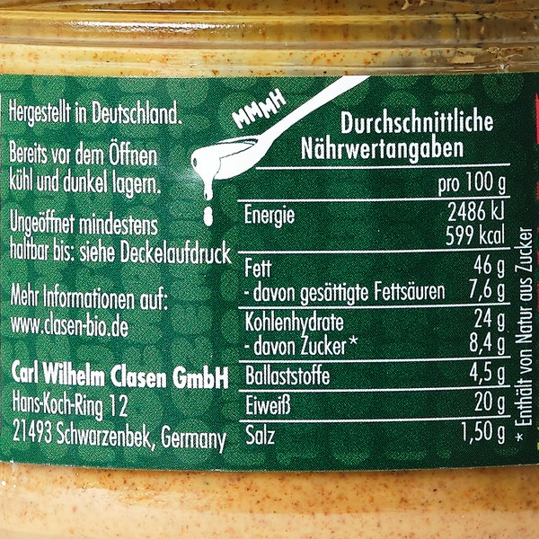 Storage instructionsNutty oil may settle during storage. This is a natural process that does not reduce the quality; stirring will make the product creamy again