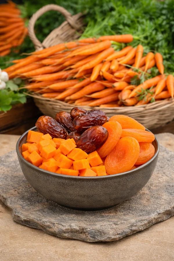 The special character of these cookies comes from the harmonious combination of mildly nutty spelt and fruity sweetness. The carrots provide a pleasant juiciness, while dates, sultanas, and apricots give the cookies a natural sweetness. The result is a balanced flavor with a fine texture—perfect for an enjoyable break.
